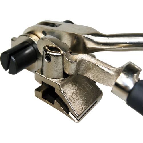 Cette cercleuse à feuillard sert à effectuer les opérations de serrage pour l’armement aérien sur les poteaux. Également appelé tendeur, cet outil professionnel s’utilise par les techniciens afin de sécuriser le feuillard dans le but d’offrir un moyen de fixation sûr et pérenne pour l’équipement des poteaux télécoms. Pour cela, il est possible d’utiliser des semelles, embases, étriers de fixation ou autres éléments compatibles. Vous pouvez ensuite y installer des colliers, l’armement aérien ou les boitiers télécoms comme les BPEO de façon sûre.Fonctionnant à cliquet, la cercleuse BTL de Telenco permet un serrage progressif et sans difficulté. Une fois le feuillard serré, la cercleuse permet de le couper facilement sans retirer l’outil : le serrage et la coupe s’enchainent. Il suffit ensuite de replier le feuillard et de fermer la boucle refermant les ergots de sécurisation pour terminer l’installation du feuillard.
