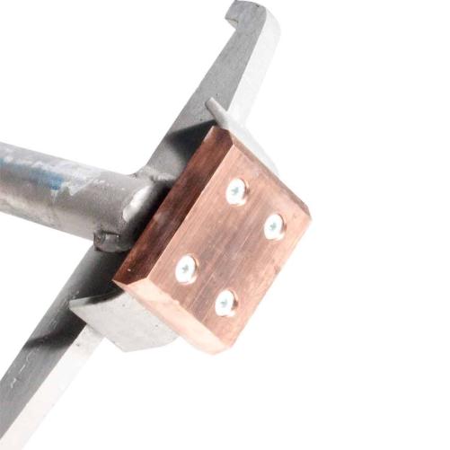 La semelle en cupro-béryllium montée sur ce marteau à plaque offre une résistance à l'usure renforcée. Cet alliage d'une grande résistance permet d'espacer significativement le remplacement de la semelle, même avec un usage intensif.
