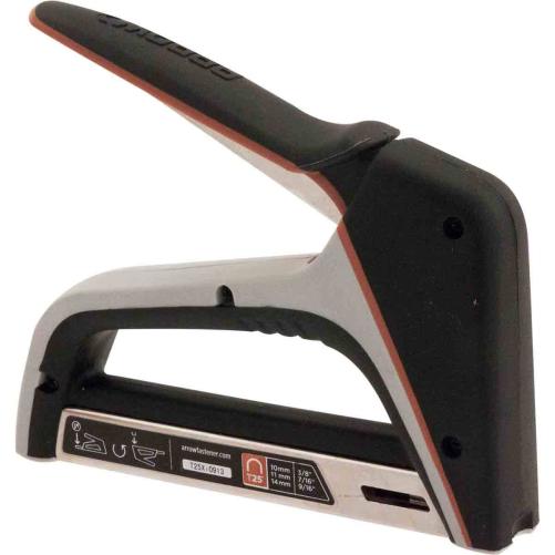 Agrafeuse manuelle professionnelle, modèle Arrow T25X, pour la pose de fils de 6mm de diamètre comme les câbles électriques, de télécommunications (ADSL et coaxiaux), les systèmes d’alarme, la serrurerie, la fixation des grillages, etc.