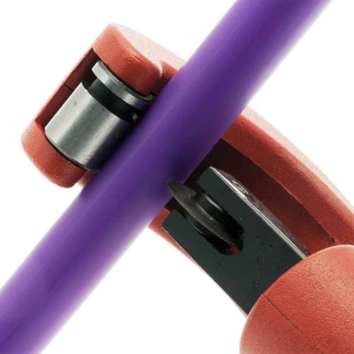 Cet outil permet la coupe de tubes en cuivre, laiton, aluminium et acier PEHD à parois fines pré-équipés de câbles fibre optique. Il offre des coupes axiales / circulaires nettes à ras grâce à ses roues de guidage avec encoche.