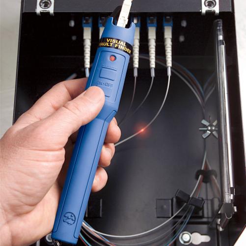 Équipé d'une source de forte puissance, d'une diode laser 650nm (lumière visible le jour) qui fonctionne en mode continu ou en mode clignotant, le stylo laser fibre optique VFF5 émet sur une distance d'approximativement 5km dans une fibre multimode ou monomode.