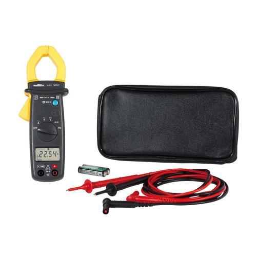 Dotée des fonctions essentielles (tension AC et DC, courant AC, résistance, fréquence et continuité), la pince multimètre ou ampèremétrique MX 350 offre une excellente prise en main et un affichage particulièrement confortable. Outre ses nombreuses fonctions de mesure, cette pince multimétrique a également un petit « plus » : le réglage du zéro DC automatique, pour la mesure de courant DC, peut aussi astucieusement être utilisé pour effectuer des mesures différentielles. Elle permet la mesure des fréquences à la fois en courant (jusqu’à 10kHz) et en tension (jusqu’à 1MHz).