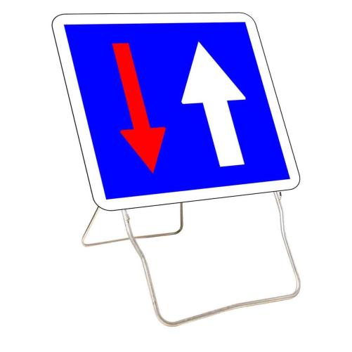 Panneau de chantier à placer au bord de la voie afin d'indiquer la priorité par rapport à la circulation venant en sens inverse. Léger, robuste, et doté d'une poignée, il se déplace facilement sur le chantier.