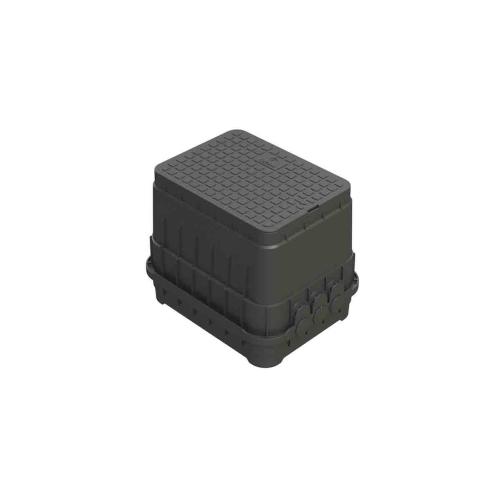 Regard (cuve et tampon) à matériaux synthétiques armés de fibres de verre. Placé dans une parcelle, il permet de tirer et raccorder les lignes souterraines de télécommunications. Équipé d'ouvertures sécables, il permet à convenance de réaliser 1 entrée / 1 sortie de câble, ou 2 entrées / 2 sorties.