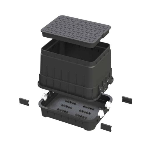 - 1 cuve avec 3 ouvertures sécables en entrée et en sortie