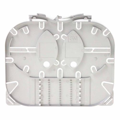 La cassette est composée d'une zone de stockage centrale qui permet également une inversion du sens d'enroulement des fibres, et de deux zones de 12 épissures permettant de stocker des protections d'épissures de diamètre 2,4mm (après rétreint).