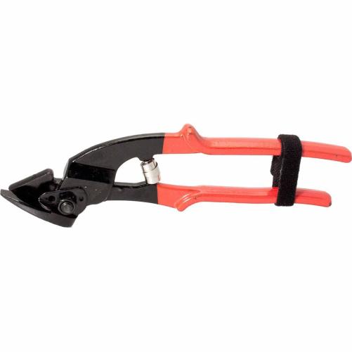 Outil de cerclage robuste avec bec plat. Cette cisaille coupe-feuillard permet la coupe précise et facile des bandes de feuillard, des conduits ou encore des feuilles d'aluminium et d'acier.