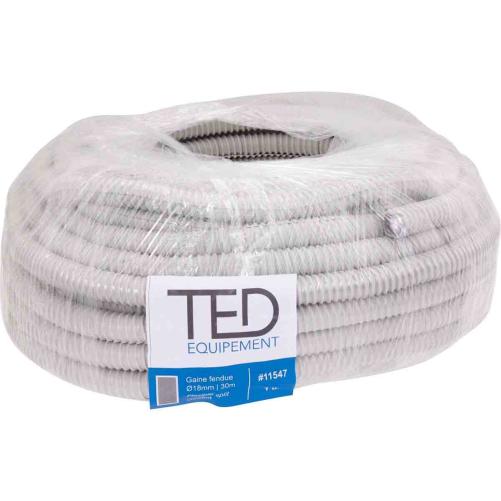 Gaine annelée fendue grise - Rouleau de 30m - Diamètre 18mm