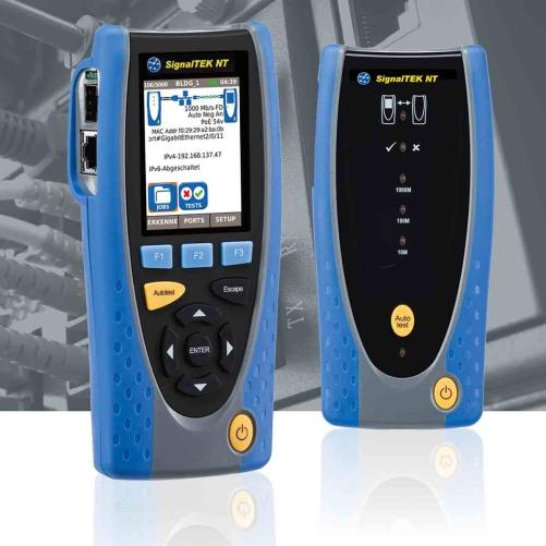 Le SignalTEK NT est un testeur de transmission professionnel conçu pour valider la performance des réseaux Ethernet et des câblages cuivre jusqu’au Gigabit. Grâce à une simulation réaliste du trafic réseau, il permet de prouver la capacité d’un lien à supporter des débits Gigabit Ethernet conformément aux normes en vigueur.