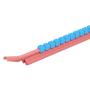 Les cavaliers sont disposés sur leur tige de montage avec des intervalles permettant de les glisser individuellement sur le câble à repérer.