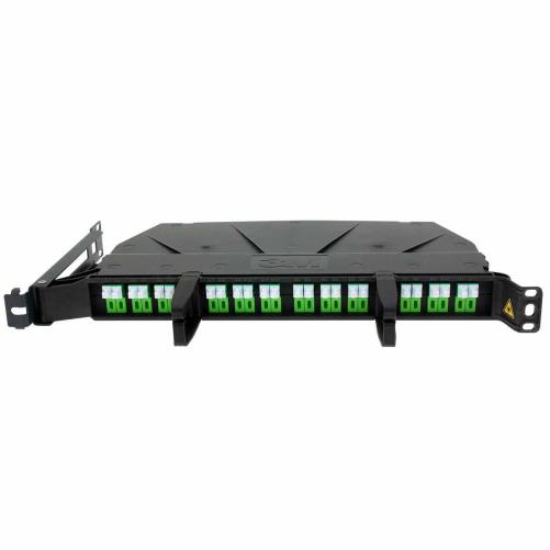 Tiroir optique 1U prééquipé de 24 ports SC/APC et de pigtails axe gauche. Type de fibre G.657A2