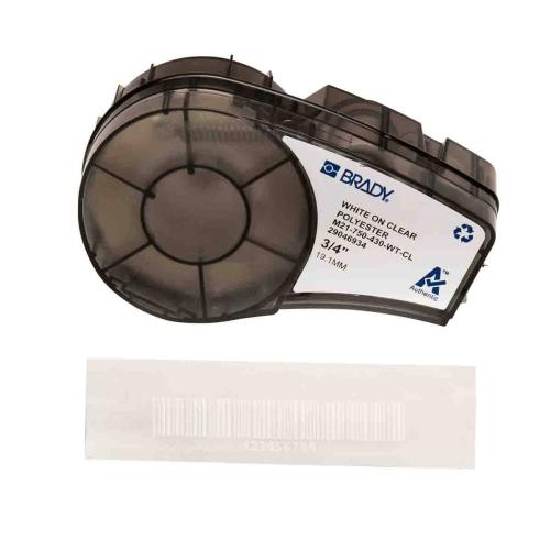 Ruban polyester transparent BRADY BMP21/M210/M211 B-430 - 19,05mm x 6,40m Blanc sur transparent
