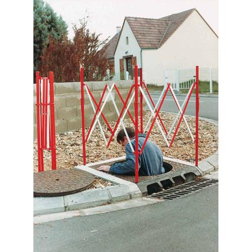 Le Garde-fou fibre optique ou barrière de regard extensible permet de sécuriser une zone de manière provisoire.