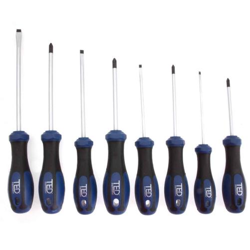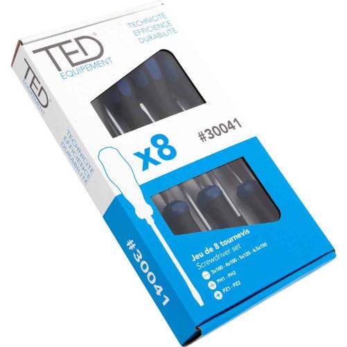 Jeu de 8 tournevis TED® - 4 plats, 2 Phillips et 2 Pozidriv