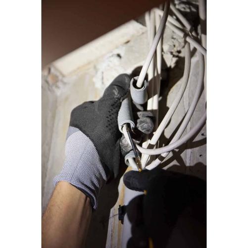 Grâce à la nervosité de son jonc, cette aiguille tire fils garantit une excellente résistance à la traction tout en restant flexible pour s’adapter aux courbures. Il est équipé à chaque extrémité d'un embout fileté sur lequel on peut visser au choix une tête de guidage, un mini tire-fil ou un oeillet de tirage. Sa tête de guidage flexible Ø4mm, la plus petite de la gamme, est spécialement conçue pour passer dans les gaines ICTA déjà équipées (télécoms, vidéo, asservissement de services, etc.).