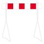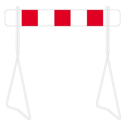 Barrière à placer lors de travaux contenant deux faces. Signalisation rouge et blanche d'un côté pour indiquer le debut d'un passage en travaux, "Fin de chantier" de l'autre pour indiquer le retour à la normale de la route.