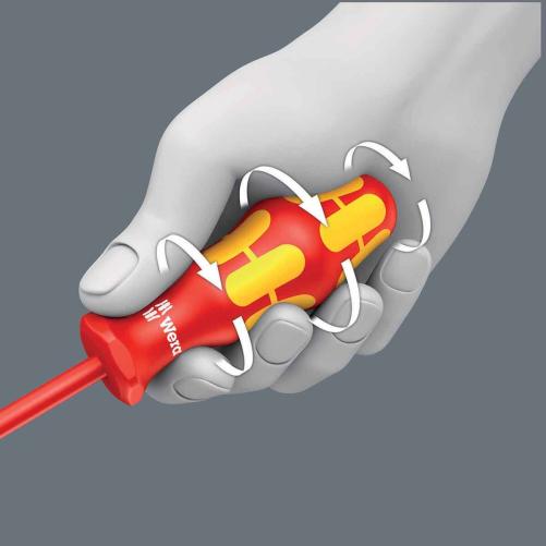 Les tournevis Kraftform de chez Wera permettent un vissage plus rapide et confortable grâce à l'ergonomie du manche reprenant la forme de la main. Les zones souples en élastomère procurent un gain de force.