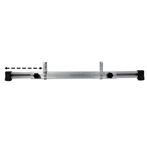 La barre stabilisatrice au pied de l’échelle est rétractable afin de prendre le moins de largeur possible durant le transport. Elle offre une excellente adhérence au sol pour un maximum de sécurité : elle évite à l’échelle de glisser et de pencher sur les côtés.