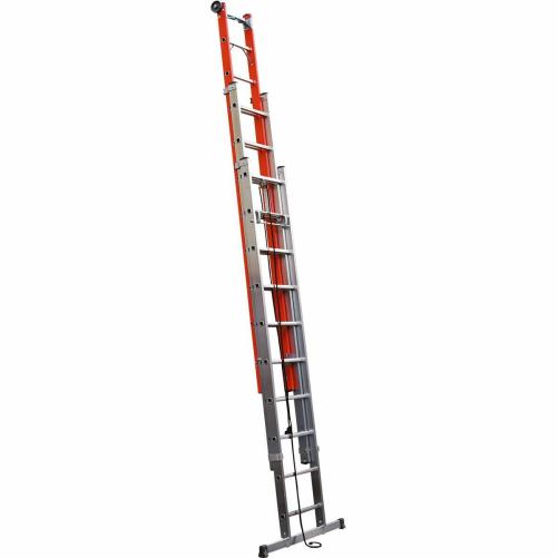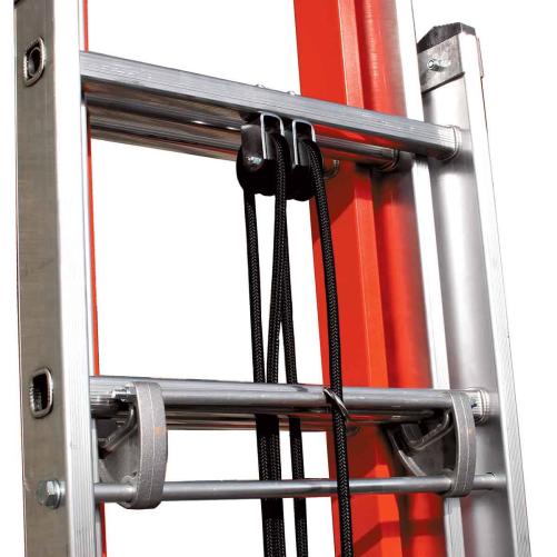 Cette échelle en fibre de verre est constituée de 3 plans. Le plan supérieur est en fibre et est équipé de montants isolants pour protéger les techniciens des risques de choc électrique lors des travaux sous tension. Les plans inférieurs en aluminium confèrent à l'échelle rigidité et légèreté. Une coulisse à corde équipée d'un appareil d'enclenchement à appel automatique bloque le plan coulissant pour un déploiement simple et rapide.