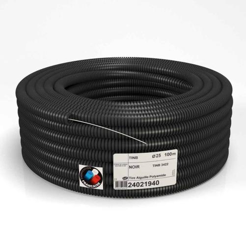 Gaine TINB noire anti-UV + fil tire-aiguille - Ø32mm lg 50m