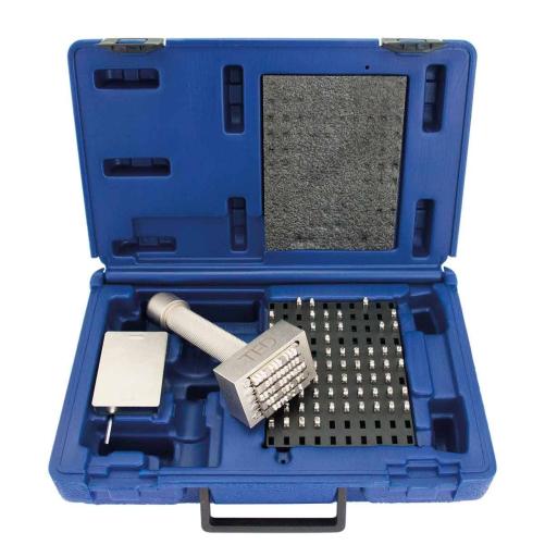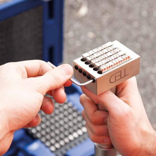 Disposant de 5 lignes pouvant accueillir chacune 12 caractères de 3mm, le marteau à frapper permet de retranscrire un maximum d'informations en un temps réduit. Une fois les caractères en place, le marquage se fait à l'aide d'une massette en frappant sur le marteau.