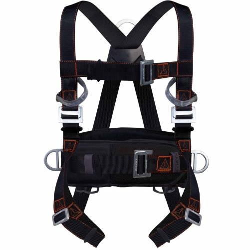 Il dispose de 4 points d'accroches pour plus de liberté de mouvement et de 2 crochets à la ceinture pour y fixer des outils.