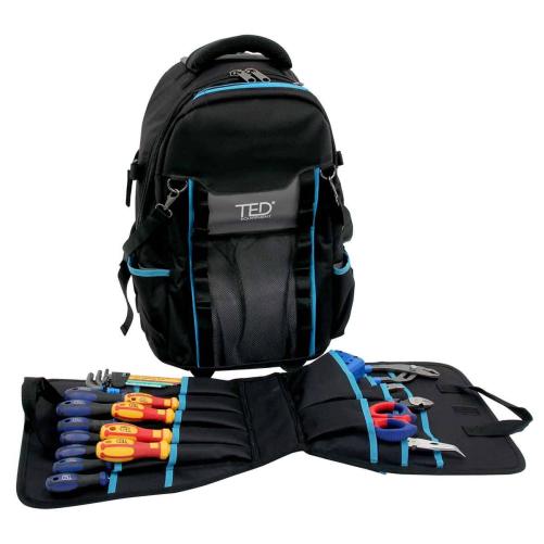Le sac à dos trolley TED® est un précieux allié pour transporter son matériel professionnel sur les chantiers. Il est pensé pour optimiser le rangement et l'accessibilité. La poche principale peut être ouverte à 90° pour offrir un accès large et rapide aux outils. Le sac contient un rangement amovible d'une dizaine d'emplacements sur chaque face pour l'outillage à main. Ils permettent un rangement ordonné selon les préférences de chaque technicien. Ce rangement amovible peuvent être sorti du sac à dos facilement grâce à des poignées, facilitant l'accès aux outils.