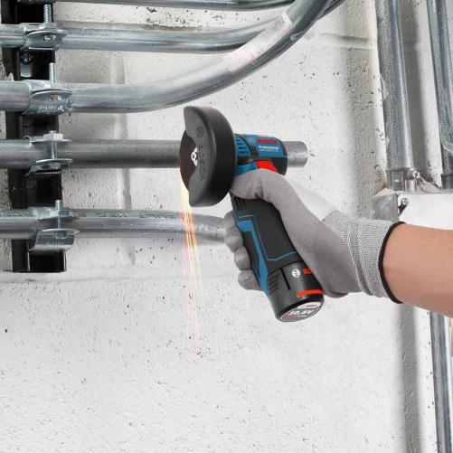 La meuleuse sans fil GWS 12V-76 PRO de BOSCH est compacte et très maniable, la rendant très pratique sur les chantiers. Sa taille vous permet d'effectuer des coupes partout sans gêne et avec une parfaite maîtrise sur de nombreux matériaux. Son moteur EC sans charbon permet une progression de travail et une coupe rapides. Elle est compatible avec toutes les batteries 12V Bosch professional.