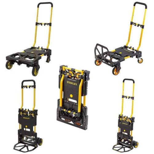 Ce chariot de manutention compact se plie et se déplie en quelques secondes pour se transformer en diable multifonction. Il offre ainsi plusieurs possibilités de transport de charges. Une fois complètement replié, il peut être transporté facilement et rangé sans prendre de place.
