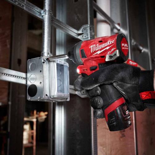 La visseuse à choc M12 FUEL de MILWAUKEE est idéale sur les chantiers, en particulier en raccordement chez l'abonné. Sa taille de 130 mm permet de l'utiliser dans tous les recoins et en fait la visseuse la plus compacte du marché équipée d'un porte-outils 1/4" Hex. Ce porte-outils permet un changement d'embout de vissage simple et très rapide. La visseuse est conçue avec le moteur POWERSTATE™, qui offre une durée de vie plus longue à l'outil, ainsi qu'une puissance étendue. La visseuse bénéficie des batteries REDLITHIUM-ION™ et d'un système de protection contre les surcharges, octroyant une autonomie améliorée pour une utilisation sans contrainte. Elle dispose de 3 modes différents (vitesse et couple).