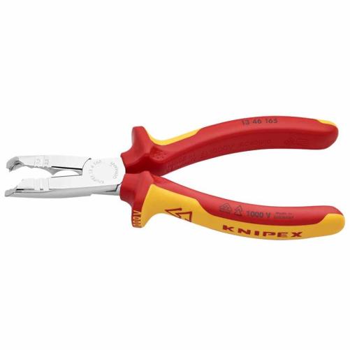 Cette pince KNIPEX est idéale pour économiser la place de vos boites et coffrets à outils. Elle combine en un seul et même outil la possibilité de couper, dénuder et dégainer tous types de câbles et gaines rondes. Sa forme élancée lui permet d'accéder par exemple aux boites d'encastrement profondes où elle sera particulièrement efficace. Ses arêtes coupantes circulaires offrent un dégainage facile des câbles sans les endommager. Elle dispose de trois oblongs pour un dénudage précis des conducteurs de 0,75, 1,5 et 2,5mm² et ses tranchants offrent une coupe nette des conducteurs, fils et petits clous et vis. Isolée 1000 V, la pince protège son utilisateur lors des travaux sous tension.