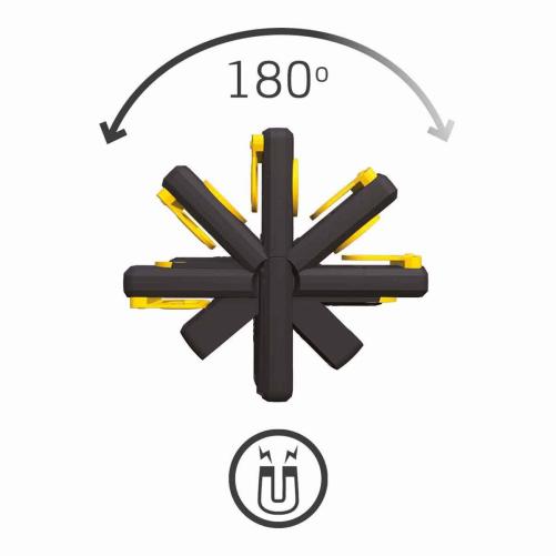 La lampe UNI-EX peut être clipée à la ceinture ou à une poche pour toujours être à portée de main. Elle peut être fixée partout à l'aide de son puissant aimant ou de son crochet pivotant. Combinées avec sa tête inclinable à 180°, ces accroches vous permettent de garder les mains libres.