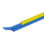 Les cavaliers sont disposés sur leur tige de montage avec des intervalles permettant de les glisser individuellement sur le câble à repérer.