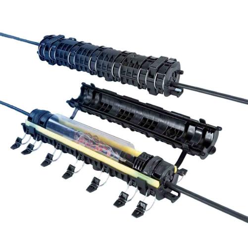 La variété de barillets (à commander séparément) rend cette protection d'épissure mécanique polyvalente. L'ouverture et la fermeture se font rapidement grâce à un système de fermeture mécanique type grenouillère.