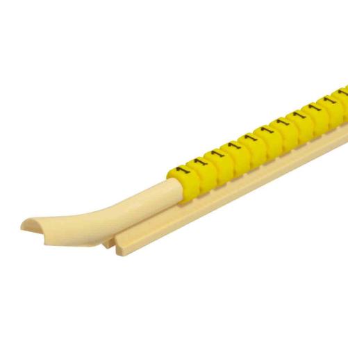 Les cavaliers sont disposés sur leur tige de montage avec des intervalles permettant de les glisser individuellement sur le câble à repérer.