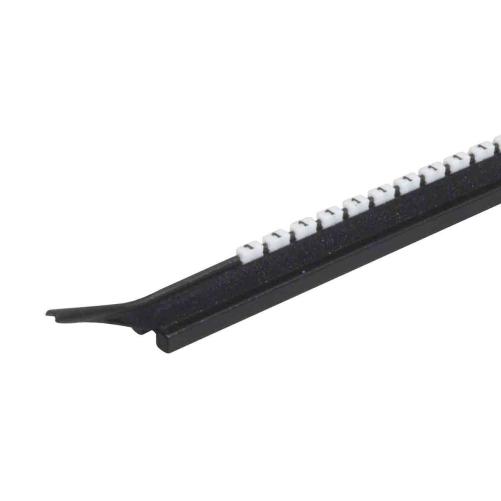Les cavaliers sont disposés sur leur tige de montage noire avec des intervalles permettant de les glisser individuellement sur le câble à repérer.