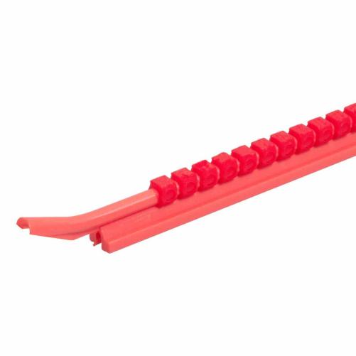 Les cavaliers sont disposés sur leur tige de montage avec des intervalles permettant de les glisser individuellement sur le câble à repérer.