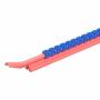 Les cavaliers sont disposés sur leur tige de montage avec des intervalles permettant de les glisser individuellement sur le câble à repérer.