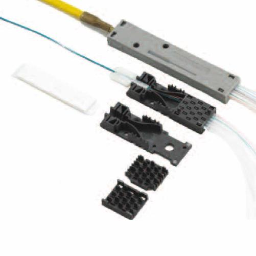 Ce système permet l’éclatement à plat d’un module de fibres, garantissant une occupation optimale de l’espace. Les fibres sont individuellement protégées sur un longueur de 1m par du tube translucide de Ø 900µm, fourni avec chaque kit. L’éclateur peut être fixé par un adhésif double face à l’entrée des tiroirs de brassage ou des boitiers de distribution.