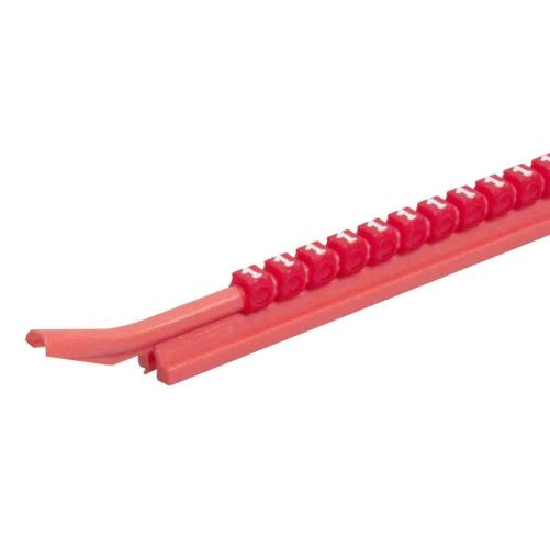 Les cavaliers sont disposés sur leur tige de montage avec des intervalles permettant de les glisser individuellement sur le câble à repérer.