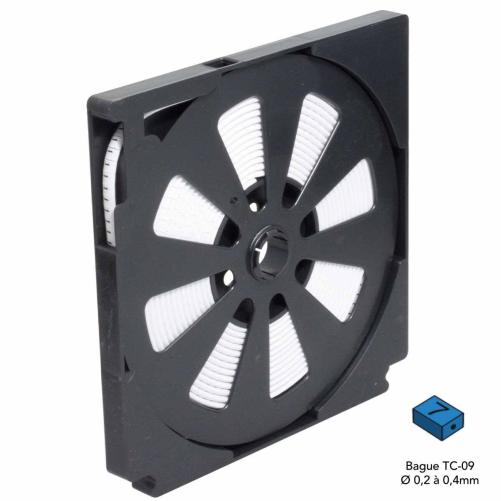 La bague Opto-Markers TC-09 est destinée au repérage des fibres optiques. Elle présente un trou central adapté à la dimension des fibres optiques et offre une surface de marquage plane, ce qui assure une lisibilité optimale malgré la finesse des supports.