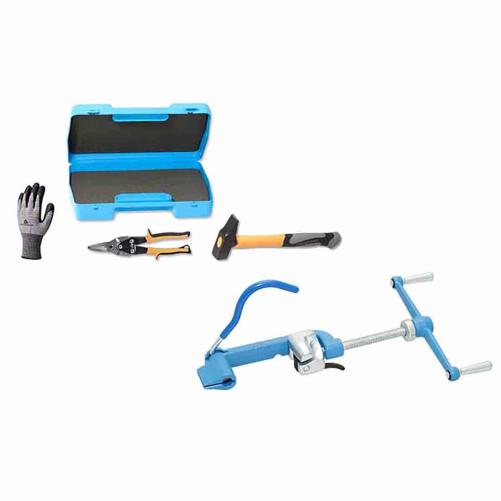 Ce pack inclut l'ensemble du matériel nécessaire à l'installation du feuillard avec une cercleuse à vis.