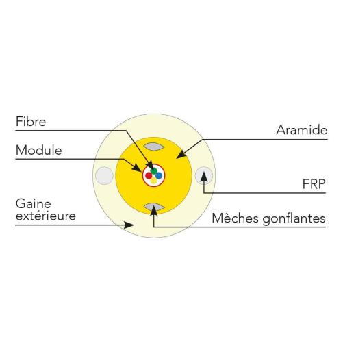 Étanchéité : le câble est étanche longitudinalement grâce à la présence de mèches gonflantes