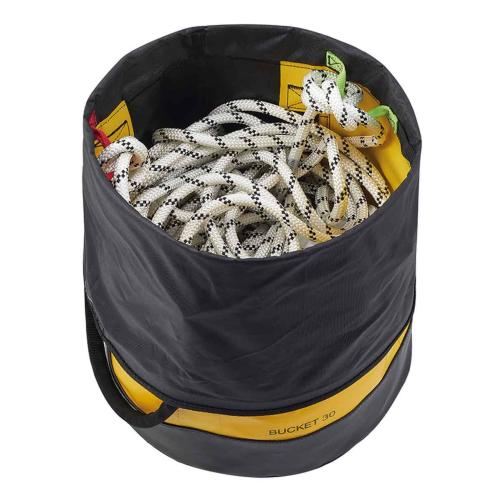 Sac à dos PETZL BUCKET auto-portant d'une capacité de 30 litres. Il maintient sa forme même vide afin de faciliter l'accès à son contenu. Ses bretelles offrent un maximum de confort. Ce sac permet de ranger jusqu'à 110 mètres de corde de 11 millimètres de diamètre.