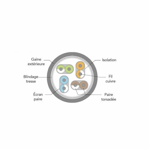 Le câble RJ45 de catégorie 7 S/FTP présente une structure 1 X 4 paires torsadées, une gaine LSZH, euroclasse Dca, et est parfaitement adapté aux interconnections de terminaux dans les réseaux LAN exigeants en terme de performance. Ce câble blindé catégorie 7 permet le transfert de données jusqu'à 10Gbit/s et est une solution de connectivité adaptée pour les réseaux Ethernet RJ45 pour entreprises et administrations.