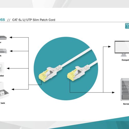 Le cordon de brassage RJ45 CAT6A U/FTP permet un câblage flexible et peu encombrant sur votre réseau.
