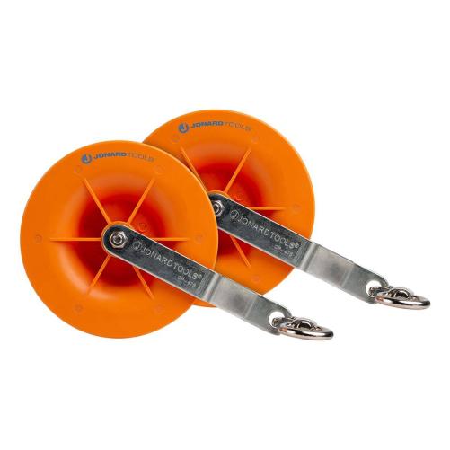 Set de 2 poulies à friction réduite concues pour faciliter le déploiement de câbles dans les bâtiments.