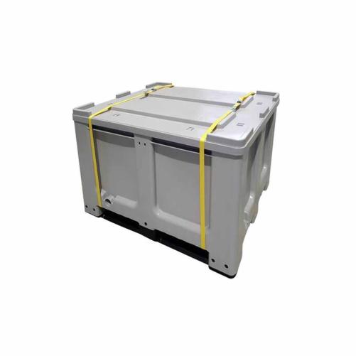La BOX pour batteries en Lithium 610 litres homologué ADR permet le stockage et le transport des produits dangereux en toute sécurité et bénéficie d'une résistance aux chocs. Elle possède 3 patins, un jeu de 2 sangles pour l'immobilisation du couvercle lors du transport et s'empile facilement.