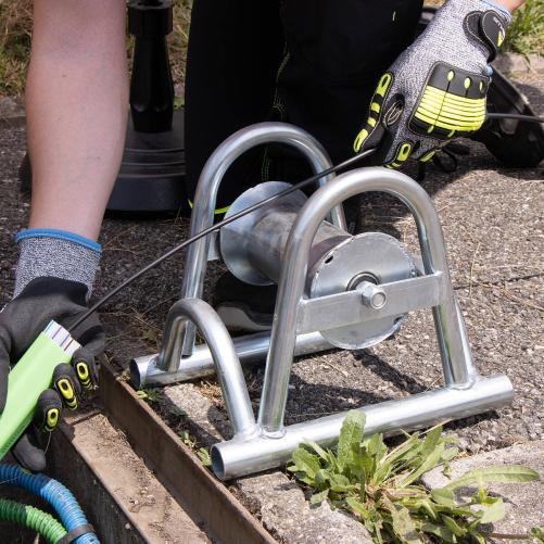 Galet de déroulage droit TED® pour câbles ou tubes. Très polyvalent, c'est l'indispensable pour tous les déploiements rectilignes afin d'éviter au câble ou tube de frotter au sol ou dans les tranchées. L'utilisation du galet réduit la force nécessaire pour le déploiement et protège le câble ou le tube. Sur de la distance prévoir plusieurs galets.