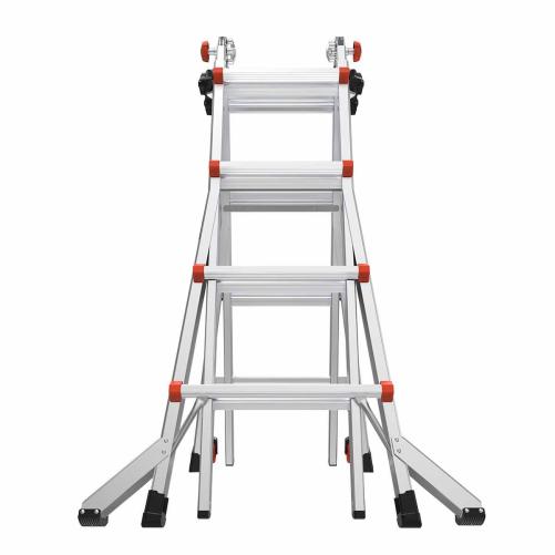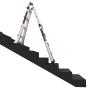 L'échelle transformable s'utilise en escabeau, en extension, dans les escaliers ou à 90° contre le mur.